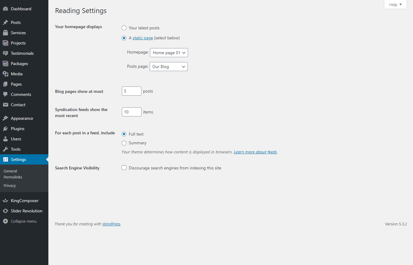 Assuming you already have a page named "Front Page", for the Front page display, select "Home" and choose your "Homepage one" page as the home page. This is what you should be seeing on your screen from left side.