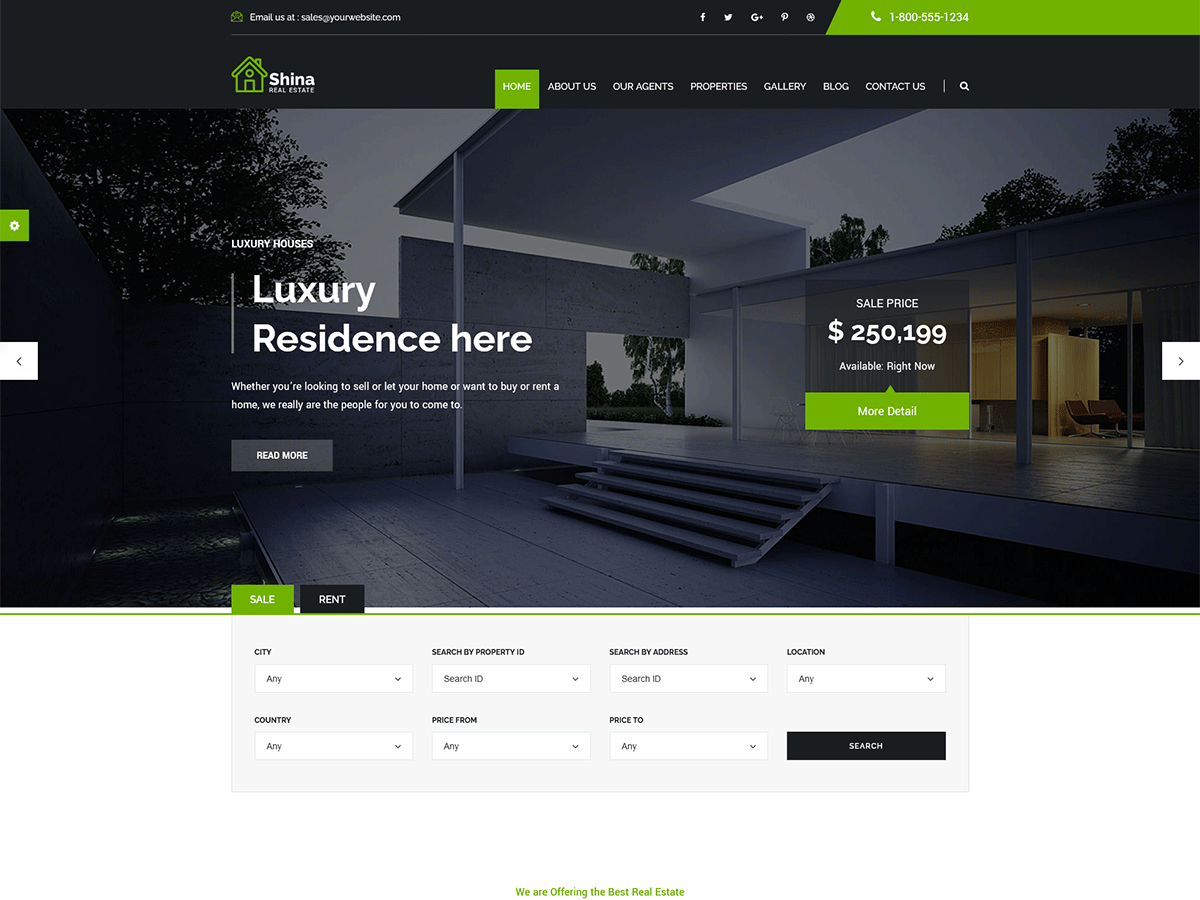 Shina is a Wordpress theme to create a website for any type of Business specially for Flat, House, Villas and Real estate agencies. Shina is best for both sale and rent of properties.The theme has beautiful and unique design that will be best suited for your online web presence. Shina comes with powerful features. Shina is a clean responsive wordpress theme. It includes Elementor plugins free with theme. The theme comes with the option of contact form to allow users to contact you. Shina is fully compatible with latest version of plugins to allow you easy handling. The Shina comes with one click demo and also more flexible features.